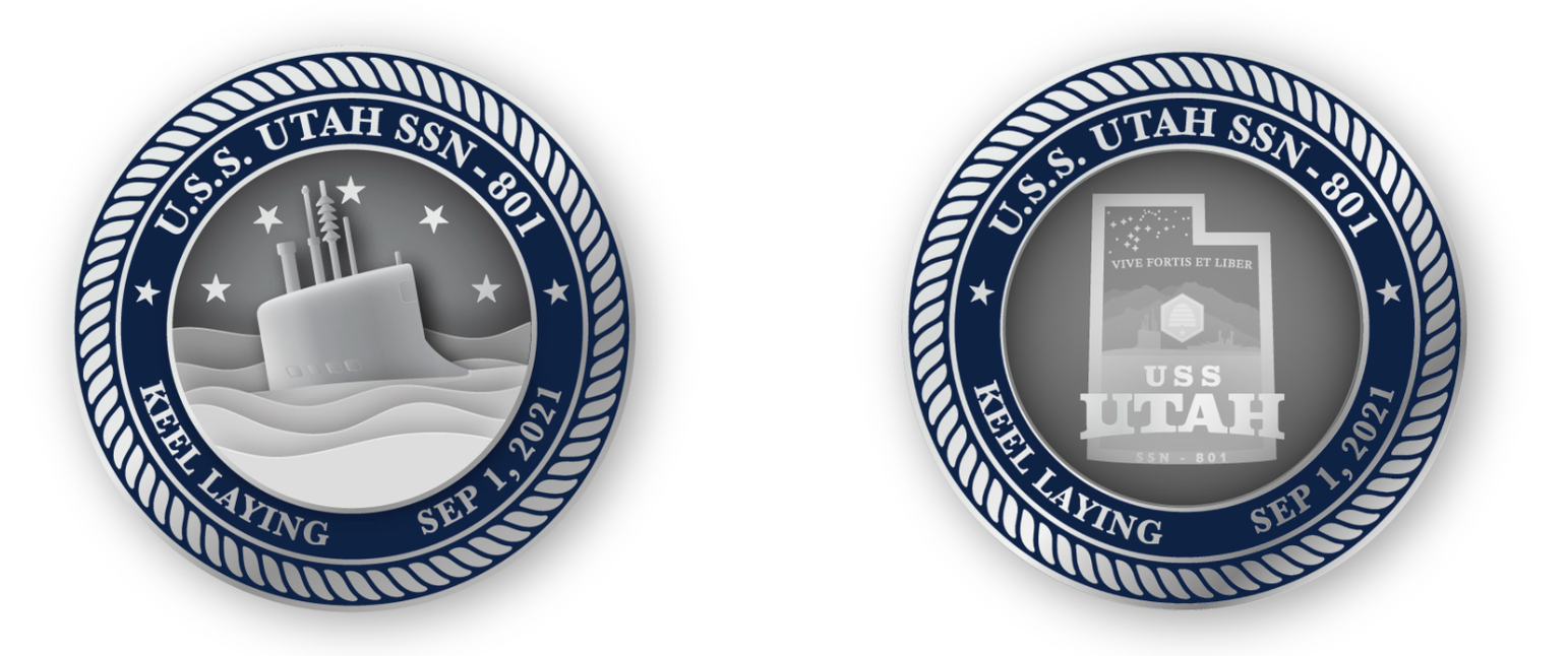 This limited edition sterling silver commemorative coin set will be available soon, pre-order yours today. Price will fluctuate based on the silver market. Each coin represents an important boat milestone; keel laying, christening, commissioning, with the final coin honor the legacy of both USS Utah ships.
